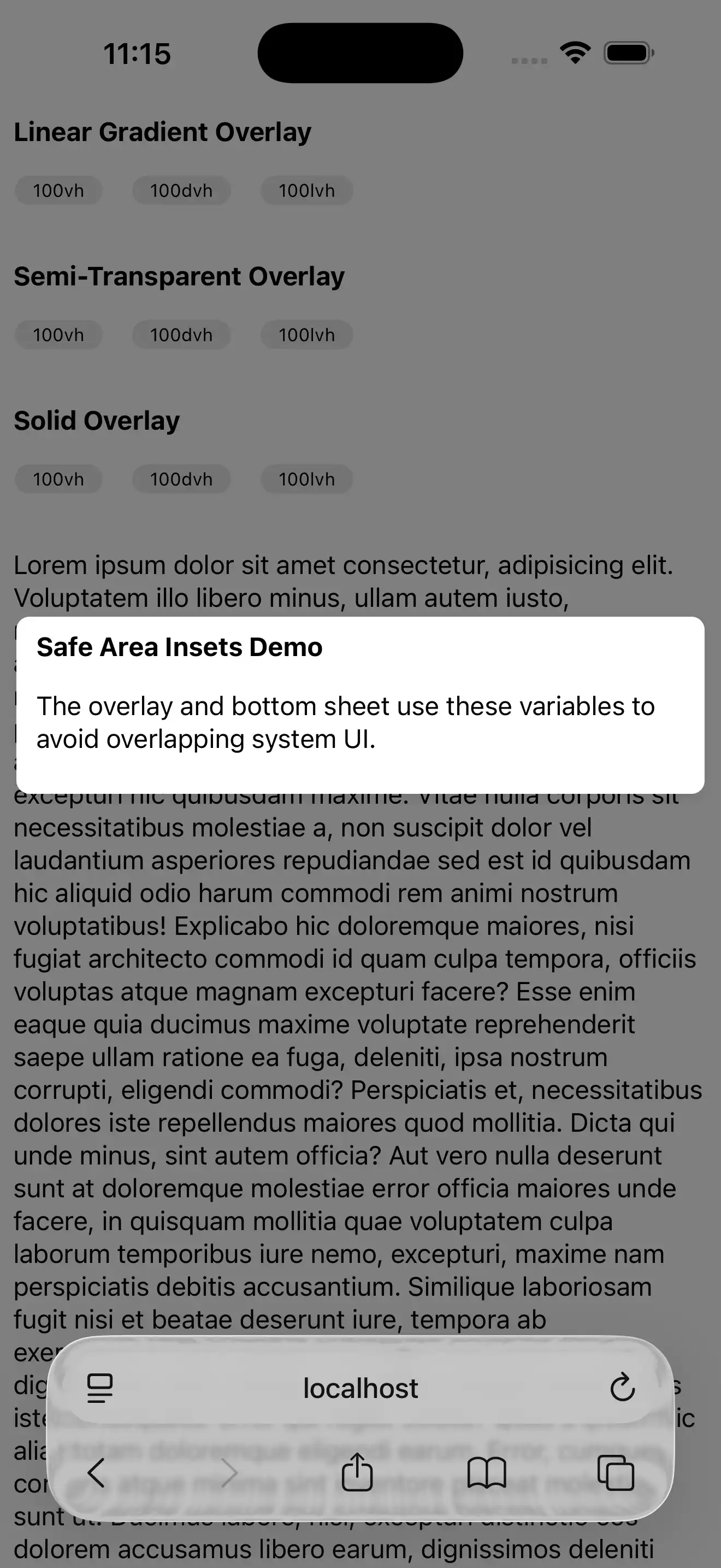 Here are a set of demos used to experiment with how Safari 26 with Liquid